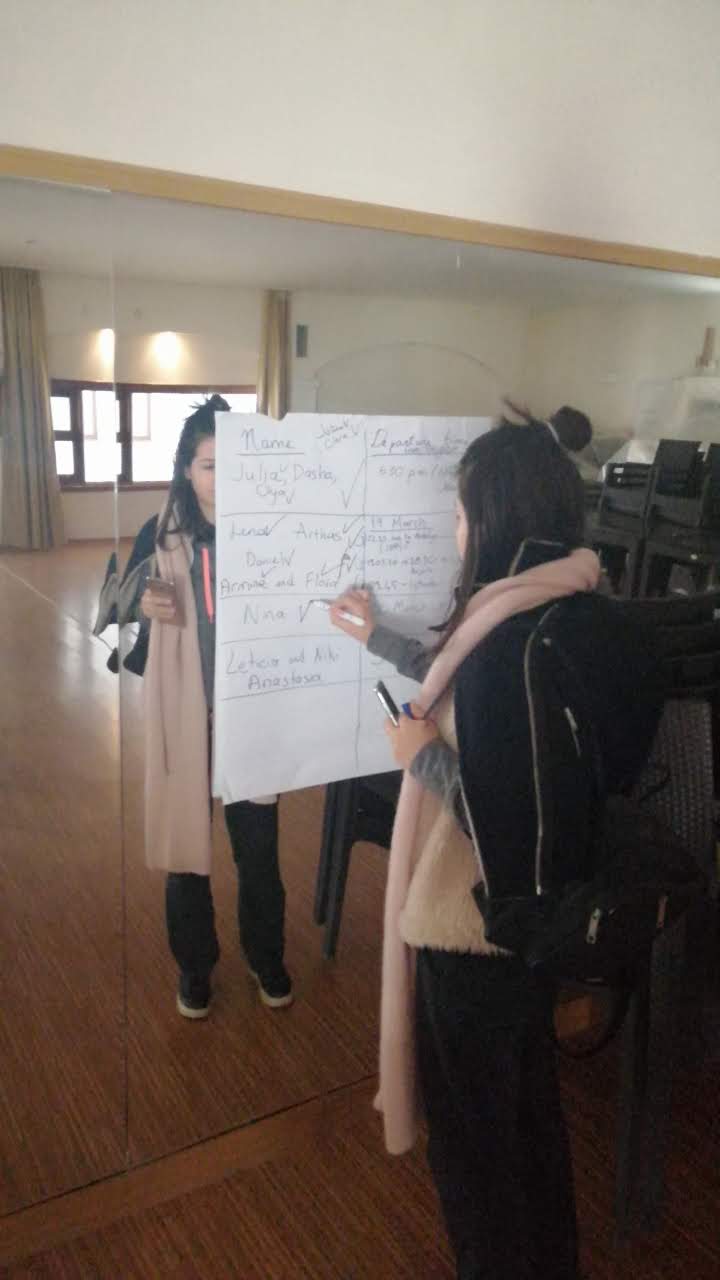 In short-term ESC projects, on-arrival training is done in the first week of the project. Since Berat, the project coordinator, had a minor injury and had to rest most of the time, we namely Arina, Ezgi and I have a bigger responsibility now. Of course, we do not complain about this situation; we plan our sessions and work in a great solidarity among each other. And Ale is there to support us. We think that she can help the volunteers and the organizing team as she did her short term ESC project in Bodrum the previous spring.